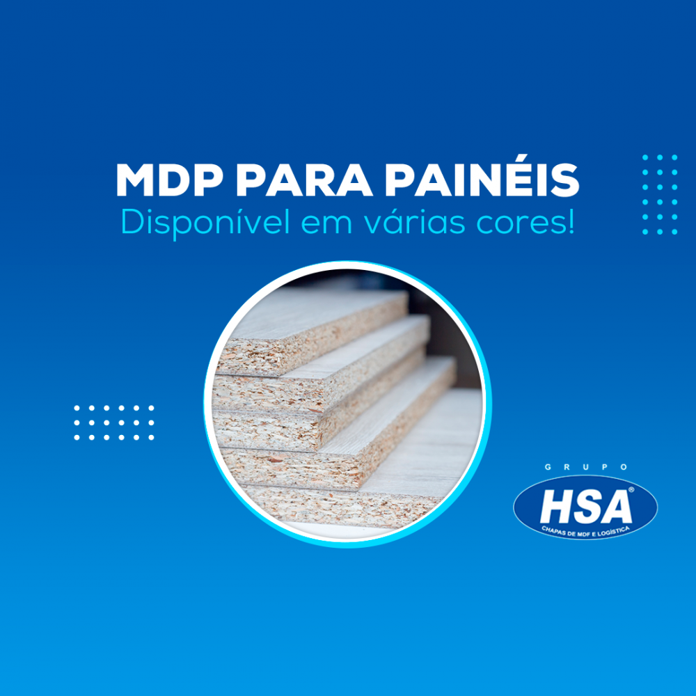 Painel de partículas de média densidade (MDP), proveniente de madeira industrializada; É produzido pela aglutinação de partículas de madeira com resinas especiais, através da aplicação simultânea de temperatura e pressão.